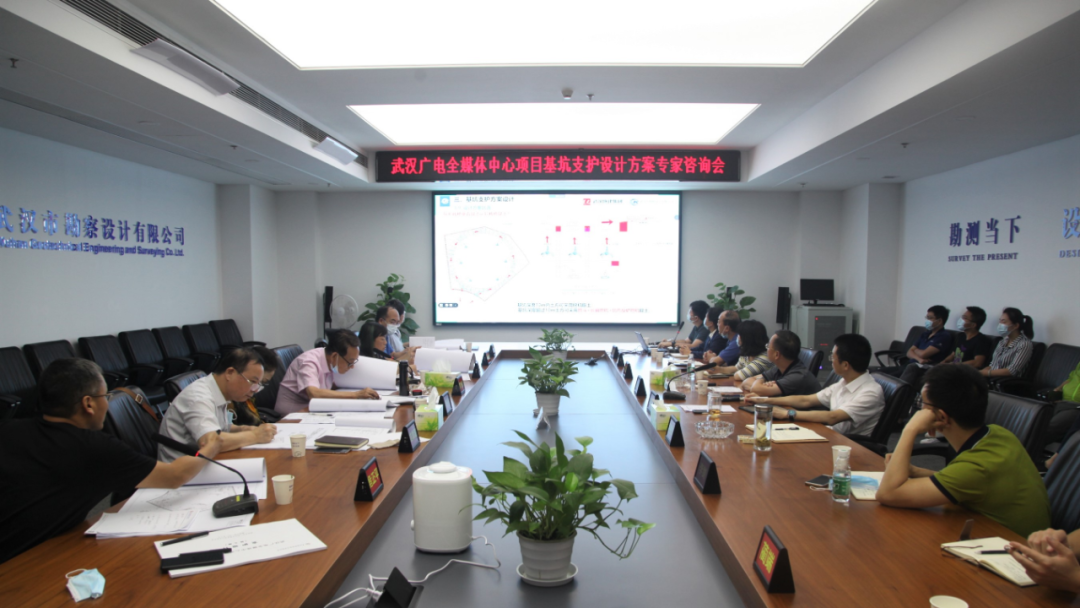2021年8月,公司中選武漢廣電全媒體中心基坑支護(hù)設(shè)計(jì)項(xiàng)目。該項(xiàng)目基坑開(kāi)挖面積約3.2萬(wàn)平方米,開(kāi)挖深度18 ~ 21米,主要采用“鋼筋砼地下連續(xù)墻+兩道鋼筋砼圓環(huán)內(nèi)支撐+落底式CSM水泥土攪拌墻”支護(hù)形式。