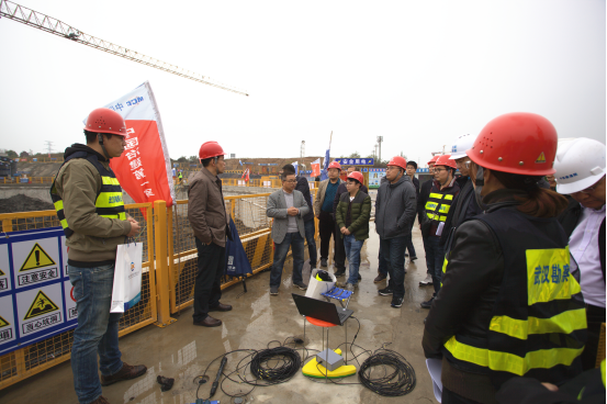 2018年11月19日下午,在公司副總經(jīng)理兼總工程師官善友的帶領(lǐng)下,綜合部、技術(shù)質(zhì)量安全部、檢測監(jiān)測公司、基礎(chǔ)工程公司、設(shè)計中心、土工試驗室等部門技術(shù)骨干,來到北湖污水處理廠深隧泵房項目施工現(xiàn)場,觀摩學習了聲納滲流檢測技術(shù),同行還有武漢地鐵集團有限公司、鐵四院、中鐵大橋局等同行業(yè)的專家和技術(shù)骨干人員。