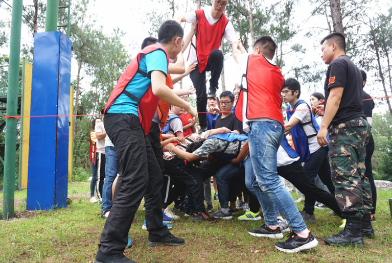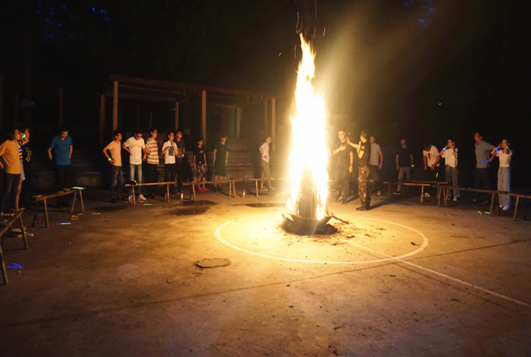 簡(jiǎn)單的軍訓(xùn)結(jié)束后,拓展活動(dòng)隨即拉開帷幕,教練向大家詳細(xì)講解了本次拓展活動(dòng)的要求和具體規(guī)則,以輕松有趣的熱身方式對(duì)隊(duì)員進(jìn)行了分組,分別制定了隊(duì)名及口號(hào),并進(jìn)行了團(tuán)隊(duì)建設(shè)、團(tuán)隊(duì)融合和團(tuán)隊(duì)展示。在5名教練的指導(dǎo)下,隊(duì)員們攻堅(jiān)克難,不斷挑戰(zhàn)自我、突破自我,先后完成了“風(fēng)雨戰(zhàn)士”、“信任背摔”、“穿越電網(wǎng)”等團(tuán)隊(duì)游戲;顒(dòng)中,各隊(duì)隊(duì)員全心投入,充分調(diào)動(dòng)自己的靈感和創(chuàng)造性,積極獻(xiàn)言獻(xiàn)策,協(xié)作完成了項(xiàng)目設(shè)置的層層挑戰(zhàn),掌聲、笑聲和歡呼聲此起彼伏。當(dāng)晚,一場(chǎng)精彩的篝火晚會(huì)在月夜下拉開帷幕,隊(duì)員們手拉手圍著篝火,隨音樂起舞。來自各部門的“文藝骨干”即興表演,引得掌聲不斷,歡呼不歇。