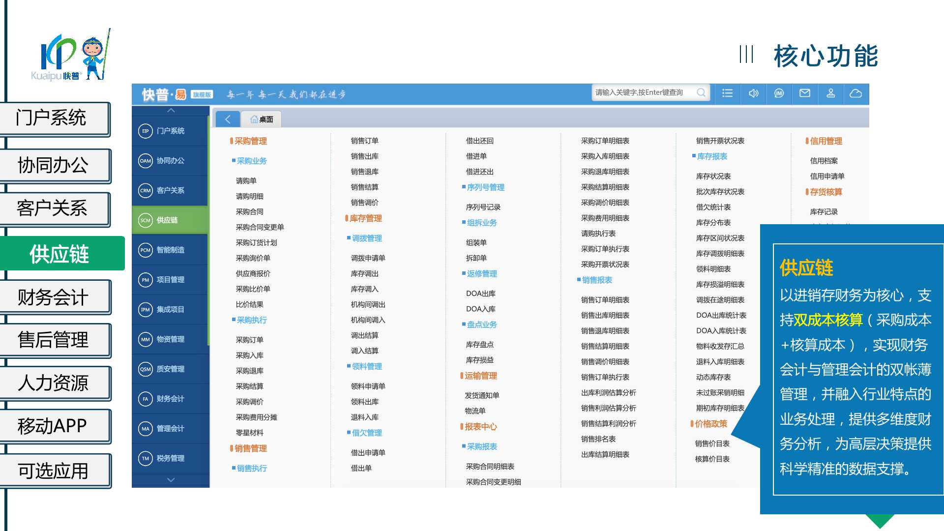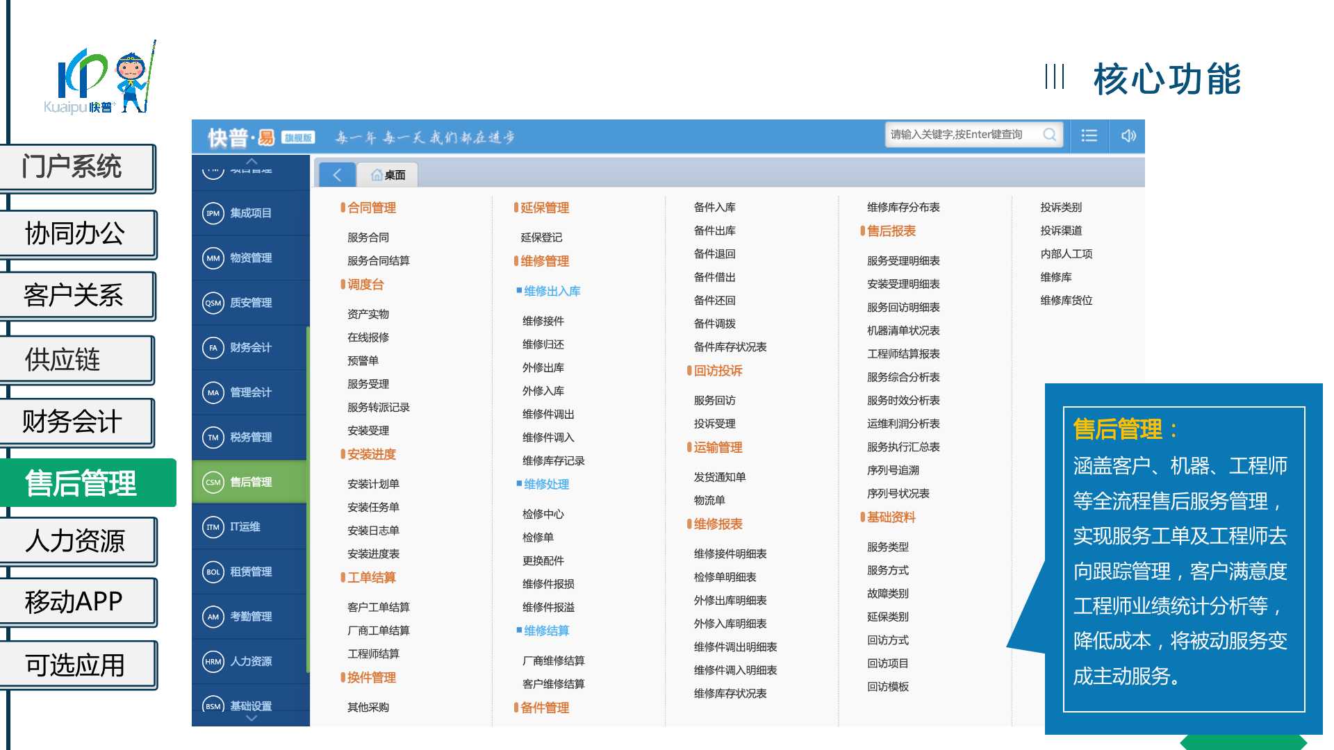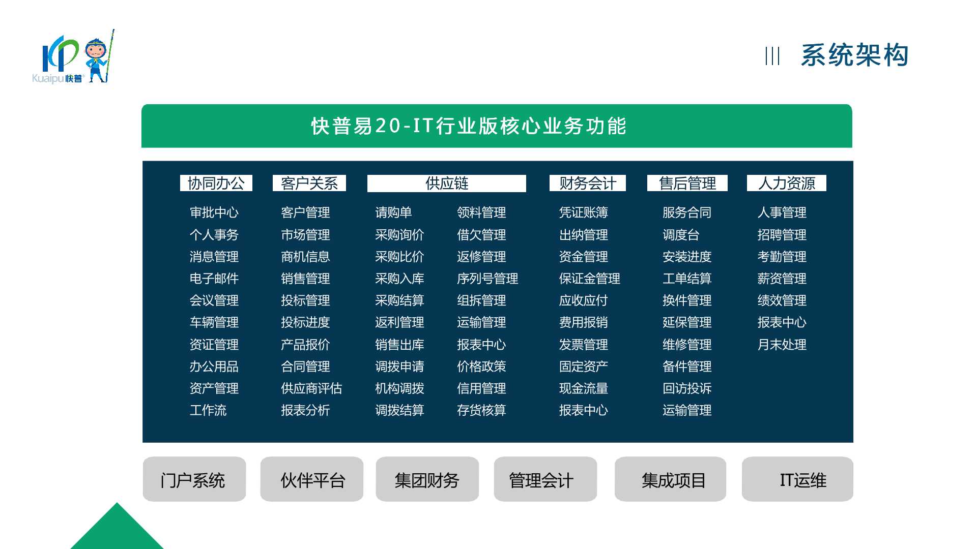 快普易20(IT行業(yè)版)為IT行業(yè)提供一站式、全流程、業(yè)財(cái)一體的數(shù)字化管理平臺(tái),解決企業(yè)的資金、客戶、銷售、服務(wù)等管理難題,通過數(shù)字化轉(zhuǎn)型提升盈利能力!