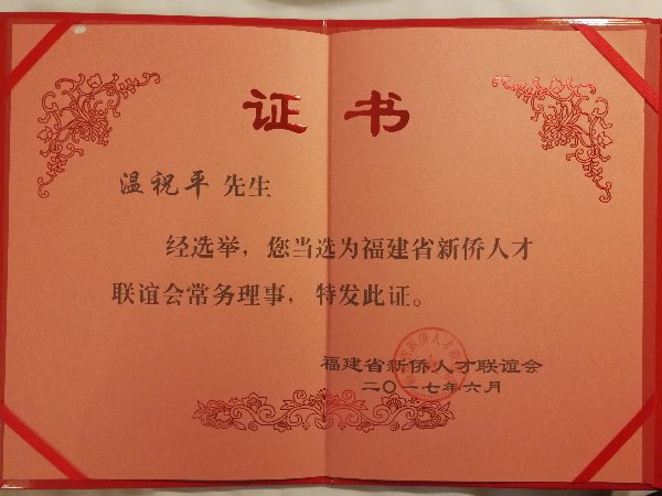 快普董事長溫祝平當(dāng)選福建省新僑人才聯(lián)誼會常務(wù)理事