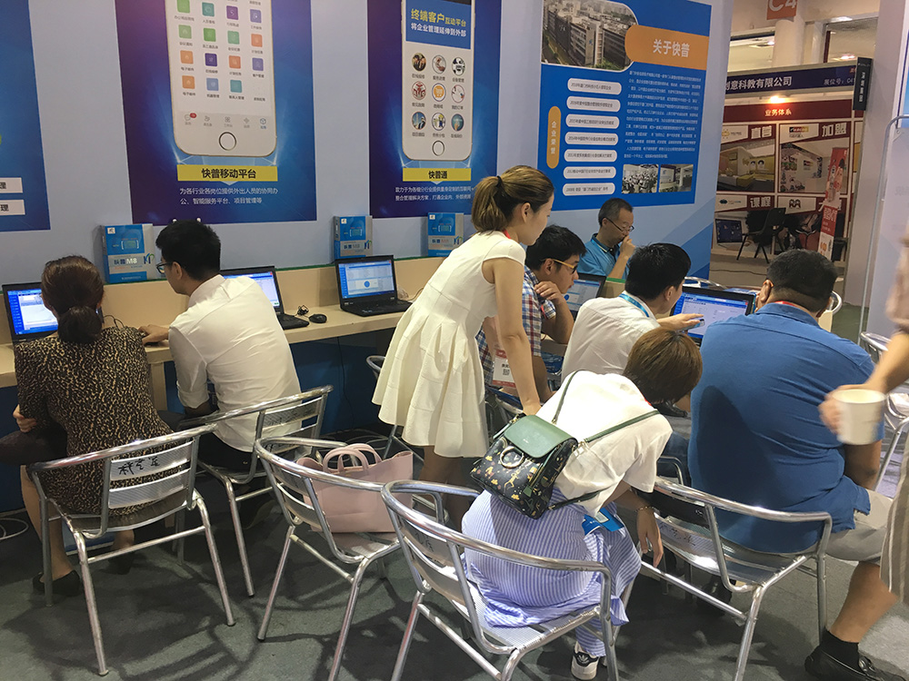 觀眾紛紛加入現(xiàn)場體驗快普M8管理系統(tǒng),體驗強大的整合管理功能。