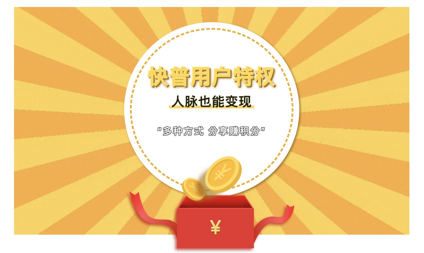 為進(jìn)一步回饋老用戶的貢獻(xiàn),現(xiàn)誠(chéng)邀您參與“快普感恩回饋大行動(dòng)!”,與我們共享數(shù)字經(jīng)濟(jì)發(fā)展的紅利!通過(guò)主動(dòng)推薦、轉(zhuǎn)介紹客戶,您將獲取豐厚的積分返利,讓您的每一份付出都得到實(shí)質(zhì)性的回報(bào),人脈資源也可以獲得變現(xiàn)!