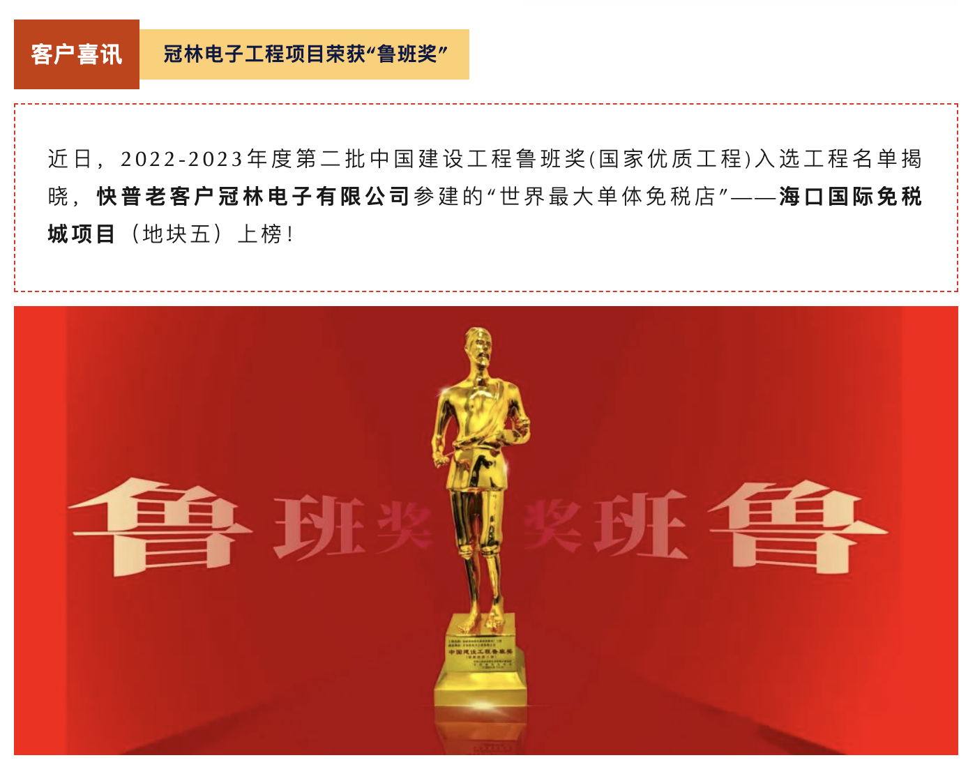 中國建設(shè)工程魯班獎(jiǎng)(國家優(yōu)質(zhì)工程)是由中華人民共和國住房和城鄉(xiāng)建設(shè)部指導(dǎo)、中國建筑業(yè)協(xié)會(huì)實(shí)施評(píng)選的獎(jiǎng)項(xiàng),是中國建筑行業(yè)工程質(zhì)量最高榮譽(yù)獎(jiǎng),被譽(yù)為中國建筑業(yè)的“奧斯卡”,主要授予中國境內(nèi)已經(jīng)建成并投入使用的各類新(擴(kuò))建工程,且工程質(zhì)量應(yīng)達(dá)到國內(nèi)領(lǐng)先水平。